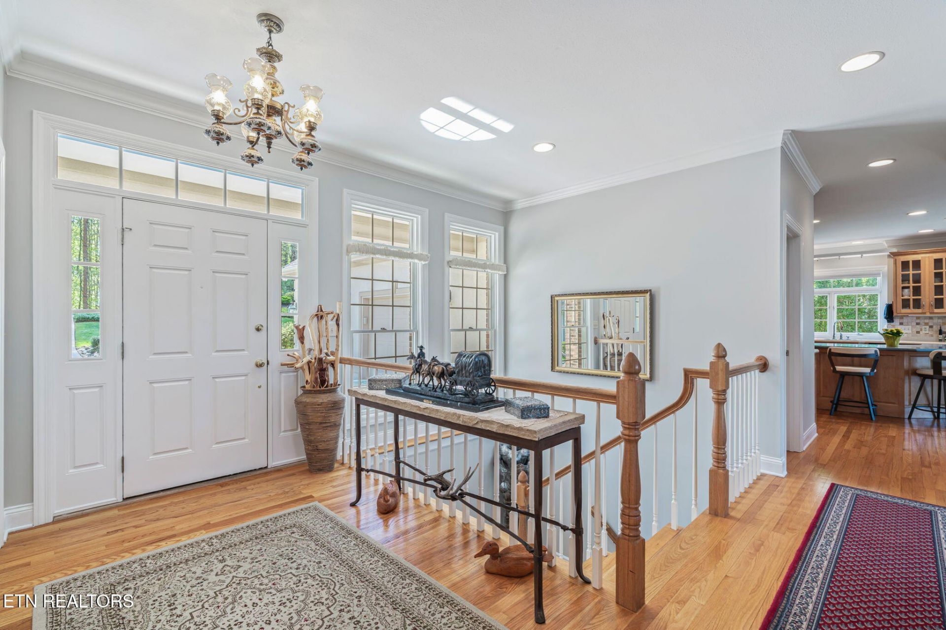Tucked gracefully along the 11th fairway, this custom golf-front 4-bedroom, 3.5-bath residence offers a rare blend of serenity, privacy, and refined luxury. Framed by a natural wooded buffer, the home enjoys tranquil golf course views while maintaining a peaceful, park-like setting enhanced by beautiful professional landscaping--an idyllic retreat designed for rest and relaxation.Inside, soaring eleven-foot ceilings, elegant crown molding, and rich hardwood floors create an atmosphere of understated sophistication. Expansive windows with transoms invite in soft natural light, while new blinds throughout add both style and comfort. A striking double-sided gas fireplace anchors both the living room and an expansive keeping room, perfect for unwinding after a day on the course.The gourmet kitchen is thoughtfully appointed for both everyday living and entertaining, featuring double ovens, a sleek glass cooktop, a Sub-Zero refrigerator, and a generous island that invites conversation. Seamlessly connected to the keeping room, the space easily accommodates a grand dining table for memorable evenings with friends and fellow golf enthusiasts.A four-season sunroom provides a peaceful retreat with captivating views of the manicured fairway and surrounding gardens, opening onto a spacious deck ideal for morning coffee or sunset relaxation.The main-level primary suite is a private sanctuary, complete with direct deck access, serene golf views, a spacious walk-in closet, and a beautifully updated luxury shower. An additional en-suite bedroom, along with a stylish guest powder room, ensures comfort and convenience for visitors.The lower level extends the home's welcoming ambiance, offering a generous family room with porch access, two well-appointed guest bedrooms, a full bath, and dedicated spaces for hobbies, including a workshop and golf cart storage. Thoughtful storage solutions are found throughout, including a custom-built closet system and a large mechanical room with built-in shelving.Practical luxury continues with an oversized two-car garage, a rain gutter leaf filtration system, and a roof recently treated with Roof Maxx to extend its life by an additional five years. The home has been meticulously maintained, including ongoing annual pest service contracts for added peace of mind.Modern comforts and upgrades abound, including Pella windows and doors, a security system, radon mitigation, dual water heaters, a seven-zone irrigation system, and a dual-fuel, three-zone HVAC system with electronic filtration. An Aqua Clear water filtration system further enhances everyday living, while an outdoor fire pit invites relaxed evenings under the stars.This exceptional property is more than a home--it is a private retreat along the fairway, crafted for those who appreciate the rhythm of the game and the quiet luxury of refined living. Buyer to verify all information.
