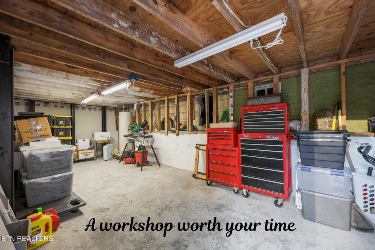 Back on market due to buyer's change in plans. Charming 3-bedroom, 2-bath home with an office in the the most charming community historic Norris. Built in 1933, this home blends classic character with modern updates, including siding, windows, extended larger gutters, bamboo flooring, and an updated primary bathroom with a walk-in tiled shower. A wood burning fireplace add warmth and comfort with a newer insert and professional cleaned chimney. The property also features a 2-car detached garage and a basement workshop, offering great storage and workspace. With approximately 1,795 square feet, the flexible layout allows for working from home or guests. The bedrooms are down one hall way, the office connects to one bdrm & to the hall way. The kitchen and dining room combo are very welcoming and designed for gathering. The amount of natural light will please your soul. This is the ideal East Tennessee location, with the entire community being quaint and peaceful. Step right outside and walk the trails; fish, hike or boat right there at Norris Dam State Park.