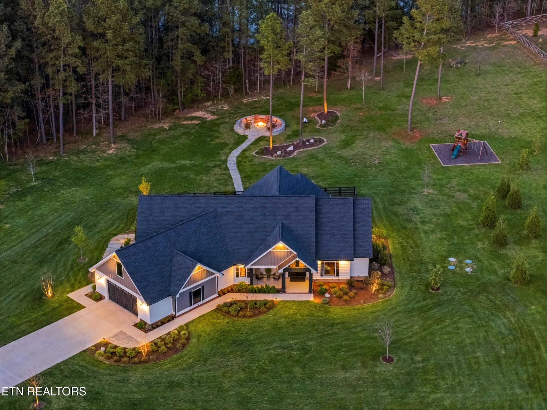 Welcome to 136 Wilderness Drive, an exceptional luxury home set on 2.3 private acres in the gated community of The Ridges at Tellico Lake. Just 21/2 years old, this meticulously maintained residence offers 2,592 square feet of thoughtfully designed living space, including a finished bonus room above the oversized two-car garage. With water access ideal for fishing or simply enjoying the peaceful surroundings, this property offers a rare combination of privacy, natural beauty, and refined living.Step inside to a light-filled great room where 10-foot ceilings, expansive windows, and a natural gas log fireplace with brick surround and wood mantel create a warm yet sophisticated focal point. The open-concept layout flows seamlessly into the kitchen and dining area, designed for both everyday comfort and effortless entertaining, while views of the covered deck and tranquil backyard draw you outdoors.The kitchen is both stunning and functional, featuring a large waterfall-edge granite island, stainless farmhouse sink, and stylish pendant lighting. A hidden walk-in pantry with butcher block counters adds charm and practicality. High-end ZLine stainless appliances include a six-burner gas cooktop with vented hood, wall oven, microwave drawer, dishwasher, and a four-door refrigerator. Custom shaker cabinetry, granite countertops, under-cabinet lighting, and a full-height tile backsplash complete the space.The primary suite offers a true retreat, highlighted by a large picture window overlooking the backyard and a spacious walk-in closet with custom shelving and direct access to the laundry room. The spa-inspired bath features dual vanities, elegant fixtures, a soaking tub, and a floor-to-ceiling tiled walk-in shower with rain head and handheld option, plus a private water closet.Two additional bedrooms provide comfortable accommodations for guests, complemented by a beautifully appointed full bath with a tiled shower and glass enclosure. A dedicated office with built-ins, a stylish half bath, and a mudroom with drop zone enhance functionality.The oversized, fully conditioned garage is equipped with its own HVAC system, EV-ready 220V outlet, dog wash station, storage, tankless water heater, and exterior access. Above, the finished bonus room offers flexible space for a media room, gym, or guest suite with its own climate control. Outdoor living is equally impressive, with Hardie Plank siding, professional landscaping, irrigation, and landscape lighting. Enjoy the covered front porch with tongue-and-groove ceiling, or relax on the vaulted back deck overlooking a fenced yard. A paver patio and stone gas firepit create the perfect setting for gatherings, all connected by a thoughtfully designed walkway. A custom-built shed/workshop with electricity provides additional storage or workshop space, enhancing both functionality and versatility.Even with its private setting, this home is conveniently located near shopping, dining, and everyday amenities in Lenoir City, Farragut, and Maryville, with easy access to Knoxville, McGhee Tyson Airport, and the vibrant Market Square district.Showings begin at noon on Thursday, April 16th**Play set does not convey**