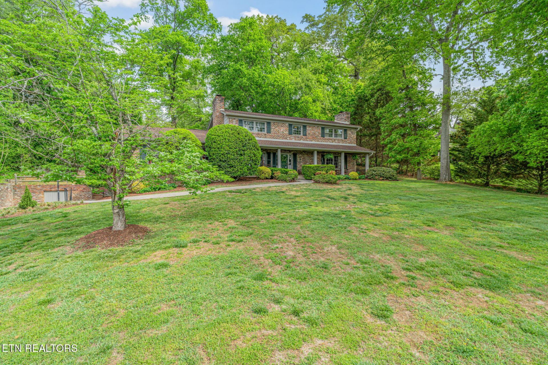 Bring your Buyers! Experience covered-front porch sitting at its best in the Historic, Holston Hills Golf Course community offering year-round views of the Great Smoky Mountains. Nestled on a spacious 0.75-acre lot, this home is just steps away from the private Holston Hills Country Club, only a short drive to vibrant Downtown Knoxville and Exit 407 - the Gateway to the Smoky Mountains. This 5-bedroom, 4-bath residence has been thoughtfully updated throughout featuring built-ins, renovated kitchen/bathrooms, quartz countertops in kitchen, stainless steel appliances and a combination of hardwood/tile/slate flooring. Enjoy an oversized family room with wet bar-perfect for entertaining, as well as 2 wood burning fireplaces and main-level office + laundry rooms for convenience. Step outside to a welcoming rear patio ideal for gatherings with a fenced area for children/pets, a fire pit, attached storage shed and ample storage in both the basement + attic.