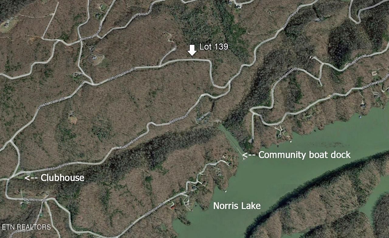 Lot 139 Whistle Valley: This 3.9 acre wooded lot is approxemently 1/2 mile from community boat dock #1 on Pebble Creek & boat slips are included with the HOA fee on a first come first served basis. The land lays well, offers almost level areas & rolling hills, has been pre-approved for a 3 bedroom septic system, & would make a perfect spot for a vacation, weekend getaway, or permanent home. Lone Mountain Shores is a Norris Lake waterfront community renowned for its natural beauty & offers 2 community boat docks, boat launch, community center, lakeside picnic area, walking trails, and now high-speed internet! Take your tour Today! Please don't just drive by this property but take time to walk the lot & see everything it has to offer. The easiest place to enter the property is behind our sign.